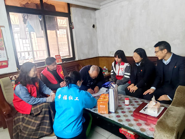 慰问组深入社区,走访老党员、退役老兵、残疾人、低保户、空巢老人等40户困难家庭,与他们亲切交流,询问生活状况与实际需求,并送上大米、沃柑、鸡蛋、面条等生活必需品。一行人还帮助行动不便的老人整理家居、排查安全隐患,让困难群众切实感受到社会关怀。