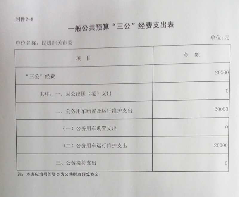 2017年“三公”经费预算为3.5万元,与上年决算数相比持平。按资金来源分,财政拨款3.5万元,其他资金0元;按具体项目分,因公出国(境)支出0元,公务用车购置及运行维护支出2.00万元(其中公务用车购置0元,公务用车运行维护费2.00万元),公务接待费支出1.5万元。
