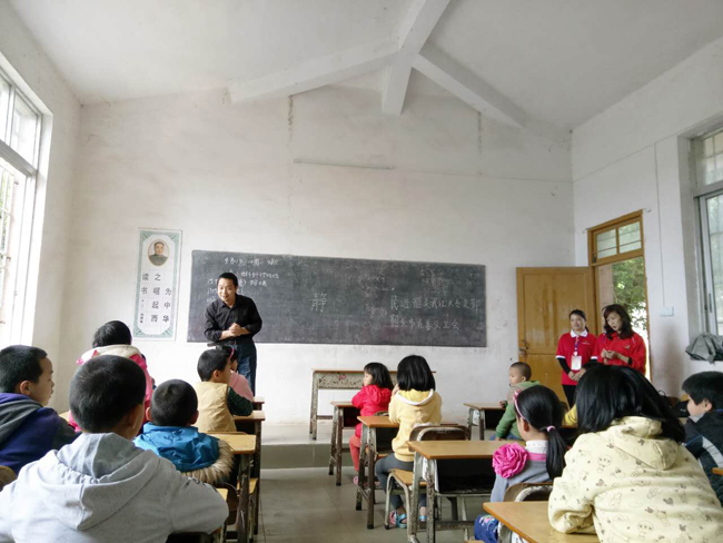 据悉,南雄市夹河口村小学地处革命老区,处于与江西省交界处,该校只有四十多个学生,大部分是留守儿童,其教学设备、学生活动器材奇缺,教师办公室仍是屋瓦结构且陈旧简陋。武江大专支部一行经过两个多小时的车程到达目的地,与南雄夹河口村小学的老师开展座谈,并与学生进行知识讲座和交流,获得师生们热烈的欢迎。