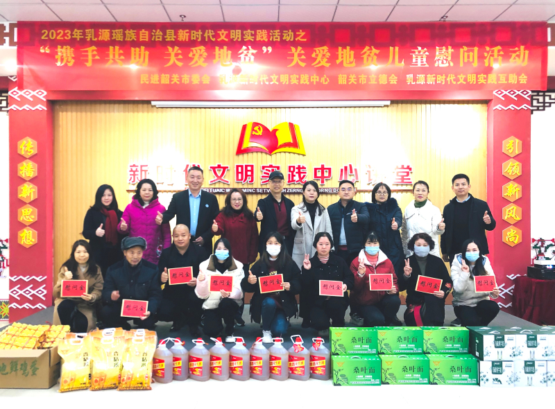 12月16日,民进韶关市委会在乳源县新时代文明实践中心举行“携手共助 关爱地贫”2023年韶关市地贫之家慰问活动,民进韶关市委会、乳源新时代文明实践互助会、韶关市立德会及爱心企业相关负责人参加慰问活动。