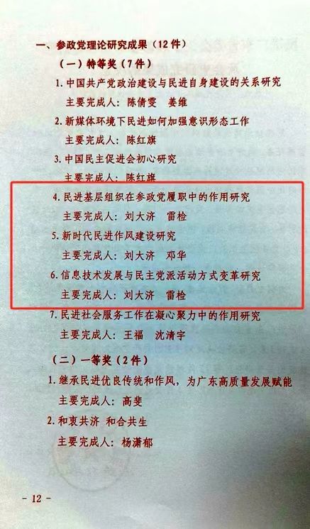 近日,广东省政协和民进广东省委会对理论研究成果进行了表彰通报,民进韶关市委会有3项理论研究成果荣获省民进特等奖,2项理论研究成果荣获省政协三等奖。